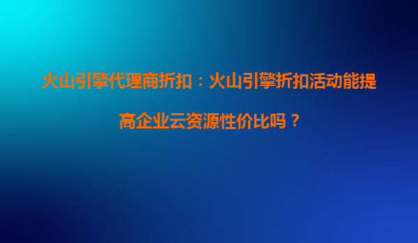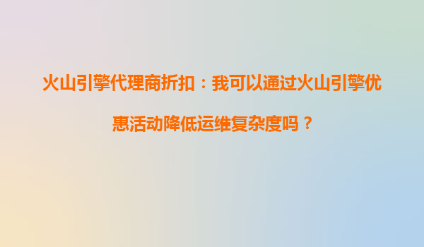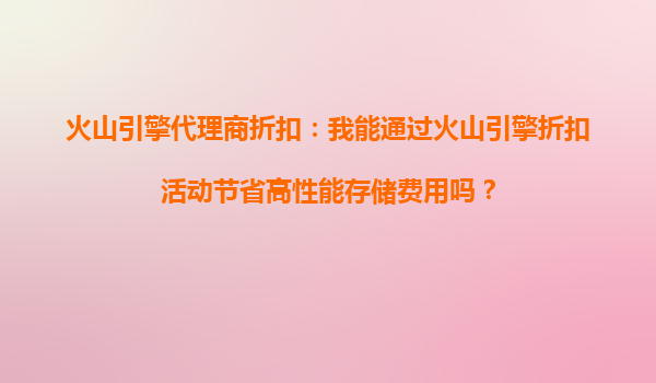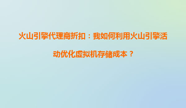 2025-10-16火山引擎代理商折扣:我能通過火山引擎折扣活動節(jié)省高性能存儲費用嗎? 隨著企業(yè)數(shù)字化轉型的加速,云計算服務成為越來越多企業(yè)的首選。火山引擎作為字節(jié)跳動推出的云服務平臺,憑借其高性能...