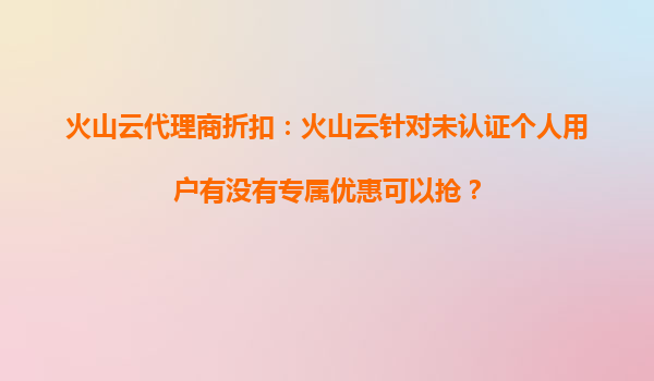 4008-020-360 火山云代理商折扣揭秘:未認證個人用戶專屬優(yōu)惠及核心優(yōu)勢解析 一、火山云未認證個人用戶能否享受專屬優(yōu)惠? 針對標題中的核心問題"火山云針對未認證個人用戶有沒有專屬優(yōu)惠",答案是肯定的。火山...