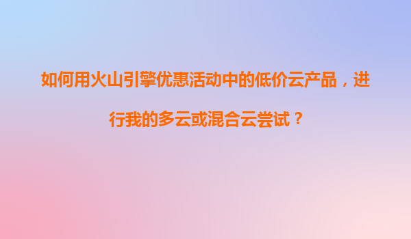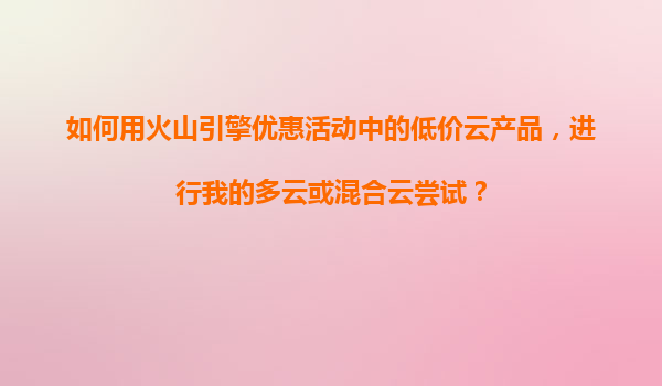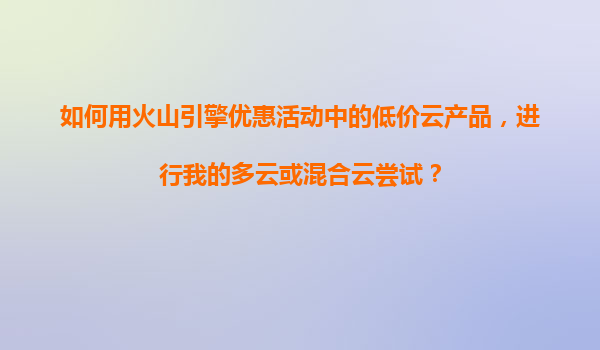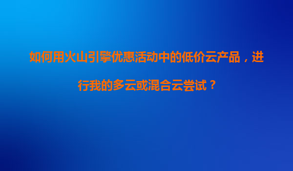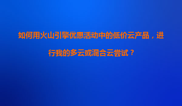 2025-11-05如何利用火山引擎優(yōu)惠活動低價云產(chǎn)品實現(xiàn)多云/混合云實踐 一、多云與混合云趨勢下的新機遇 隨著企業(yè)數(shù)字化轉(zhuǎn)型加速,多云(Multi-Cloud)和混合云(HybridClou...