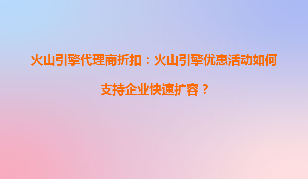 2025-10-13火山引擎代理商折扣:火山引擎優(yōu)惠活動(dòng)如何支持企業(yè)快速擴(kuò)容? 引言 在數(shù)字化轉(zhuǎn)型的浪潮中,企業(yè)面臨著業(yè)務(wù)快速擴(kuò)張的挑戰(zhàn)。如何在短時(shí)間內(nèi)高效、低成本地完成IT基礎(chǔ)設(shè)施的擴(kuò)容,成為企業(yè)亟待解決的問...