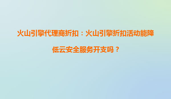 2025-10-13火山引擎代理商折扣:火山引擎折扣活動(dòng)能降低云安全服務(wù)開支嗎? 隨著企業(yè)數(shù)字化轉(zhuǎn)型的加速,云計(jì)算和云安全服務(wù)已成為企業(yè)IT基礎(chǔ)設(shè)施的重要組成部分。然而,高昂的云服務(wù)成本往往讓許多企業(yè)望而卻步。火山引擎作...
