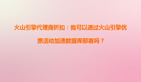2025-10-14火山引擎代理商折扣:如何通過優(yōu)惠活動(dòng)加速數(shù)據(jù)庫部署? 一、火山引擎的云數(shù)據(jù)庫優(yōu)勢解析 火山引擎作為字節(jié)跳動(dòng)旗下的云計(jì)算服務(wù)品牌,其云數(shù)據(jù)庫產(chǎn)品憑借高性能、高可用和彈性擴(kuò)展能力,成為企業(yè)數(shù)字化...