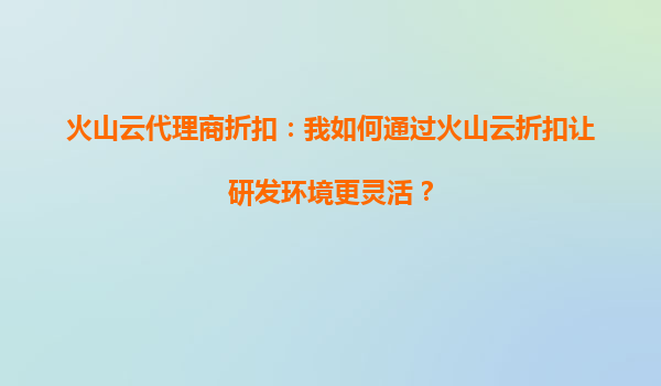 2025-10-06火山云代理商折扣:如何通過(guò)火山云折扣讓研發(fā)環(huán)境更靈活? 引言 在當(dāng)今快速發(fā)展的數(shù)字化時(shí)代,云計(jì)算已成為企業(yè)研發(fā)和業(yè)務(wù)擴(kuò)展的核心基礎(chǔ)設(shè)施。然而,高昂的云服務(wù)成本常常成為企業(yè),尤...