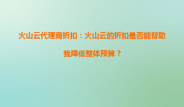 2025-10-09火山云代理商折扣:火山云的折扣是否能幫助我降低整體預(yù)算? 一、火山云代理商折扣的核心價(jià)值 火山云作為字節(jié)跳動(dòng)旗下的云計(jì)算服務(wù)品牌,通過(guò)代理商體系提供靈活的折扣政策。其核心價(jià)值在于:通過(guò)階梯式定...