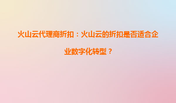 2025-10-06火山云代理商折扣:火山云的折扣是否適合企業(yè)數(shù)字化轉(zhuǎn)型? 引言 在當(dāng)今數(shù)字化浪潮中,企業(yè)紛紛尋求高效、穩(wěn)定的云計(jì)算服務(wù)以支持其轉(zhuǎn)型需求。火山云作為國(guó)內(nèi)領(lǐng)...
