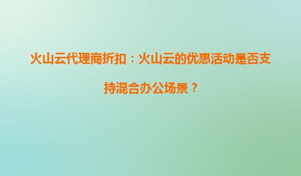 2025-10-06火山云代理商折扣:火山云的優(yōu)惠活動(dòng)如何賦能混合辦公場(chǎng)景? 一、混合辦公場(chǎng)景的挑戰(zhàn)與需求 隨著遠(yuǎn)程辦公與線下協(xié)作的融合,混合辦公模式成為企業(yè)新常態(tài)。然而...