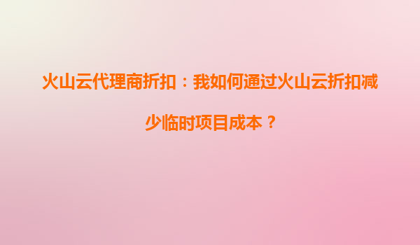 2025-10-06火山云代理商折扣:如何通過(guò)火山云折扣減少臨時(shí)項(xiàng)目成本? 引言 在當(dāng)今快速發(fā)展的數(shù)字化時(shí)代,云計(jì)算已成為企業(yè)運(yùn)營(yíng)和項(xiàng)目管理的重要工具。無(wú)論是長(zhǎng)期項(xiàng)目還是臨時(shí)項(xiàng)目,企業(yè)都需要高效、靈活且成本可控的...