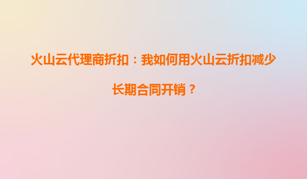 2025-10-04火山云代理商折扣:我能否通過火山云的活動享受API調(diào)用折扣? 火山云及其代理商的核心優(yōu)勢 火山云作為字節(jié)跳動旗下的云計算服務平臺,憑借其強大的基礎(chǔ)設(shè)施、穩(wěn)定的性能以及豐富的產(chǎn)品矩陣,已成為企業(yè)數(shù)字化轉(zhuǎn)型...