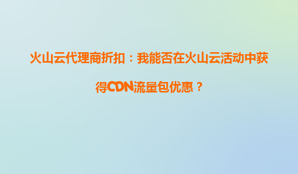 2025-10-04火山云代理商折扣:我能否在火山云活動中獲得CDN流量包優(yōu)惠? 火山云CDN流量包優(yōu)惠活動解析 火山云作為字節(jié)跳動旗下的云計算服務品牌,憑借其強大的技術(shù)支持和豐富的資源儲備,為用...