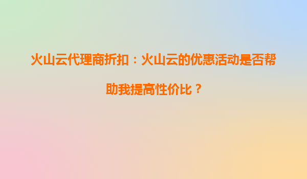 2025-10-04火山云代理商折扣:火山云的優(yōu)惠活動是否幫助我提高性價比? 一、火山云的核心優(yōu)勢 火山云作為字節(jié)跳動旗下的云計算服務品牌,憑借其技術(shù)積累和資源整合能力,為用戶提供高性能、高可靠性的云服務...