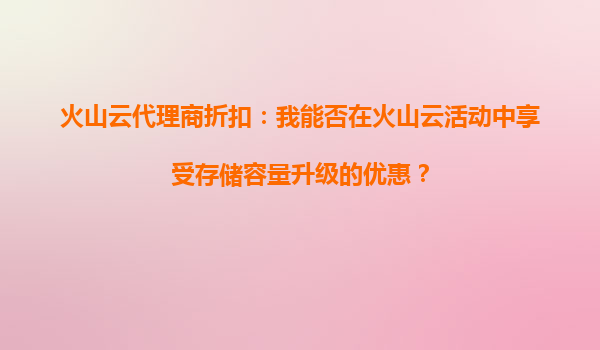 2025-10-03火山云代理商折扣:存儲(chǔ)容量升級(jí)優(yōu)惠詳解 在數(shù)字化轉(zhuǎn)型的浪潮中,企業(yè)對(duì)于云存儲(chǔ)的需求日益增長(zhǎng)。火山云作為領(lǐng)先的云服務(wù)提供商,不僅提供穩(wěn)定高效的存儲(chǔ)解決方案,還通過(guò)代理商折扣和活動(dòng)優(yōu)惠,為用戶(hù)帶來(lái)更多...