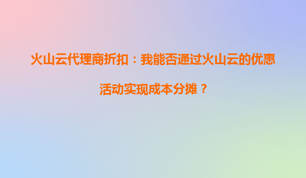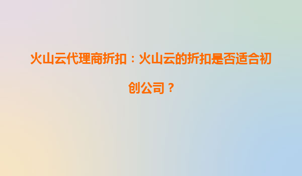 2025-10-03火山云代理商折扣:火山云的折扣是否適合初創(chuàng)公司? 引言 在當(dāng)今數(shù)字化時(shí)代,Explosion云服務(wù)已成為企業(yè)運(yùn)營(yíng)的核心基礎(chǔ)設(shè)施之一,尤其是對(duì)于初創(chuàng)公司而言,選擇合適的云服務(wù)提供商至關(guān)重要。火山云作為國(guó)內(nèi)領(lǐng)先的云...