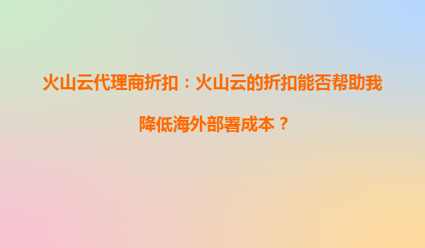2025-10-03火山云代理商折扣:火山云的折扣能否幫助我降低海外部署成本? 在全球化的商業(yè)環(huán)境中,企業(yè)越來越需要在海外部署業(yè)務(wù)以拓展市場。然而,海外部署的成本問題一直是許多企業(yè)面臨的挑戰(zhàn)。火山云及其代理商提供的折...