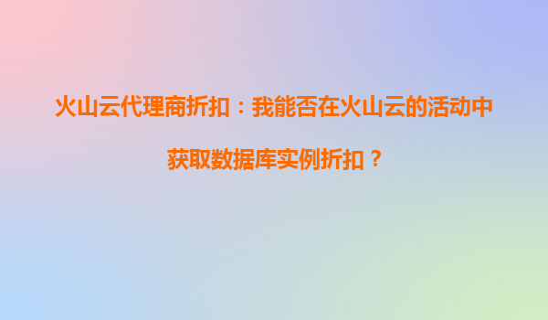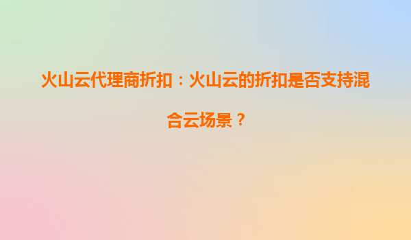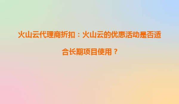 2025-10-02火山云代理商折扣:火山云的活動折扣是否有時間限制? 火山云活動折扣的時間限制解析 火山云作為國內(nèi)領(lǐng)先的云計算服務(wù)提供商,經(jīng)常推出各類優(yōu)惠活動以吸引新用戶并回饋老用戶。關(guān)于代理...