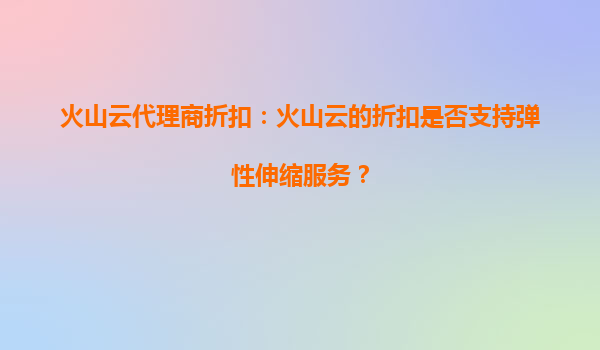 2025-10-01火山云代理商折扣:火山云的折扣是否支持彈性伸縮服務? 一、火山云彈性伸縮服務的核心價值 火山云的彈性伸縮服務(AutoScaling)是其云計算解決方案中的重要...