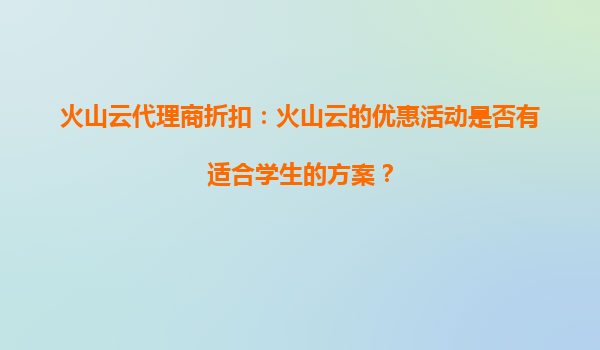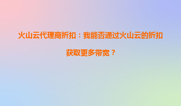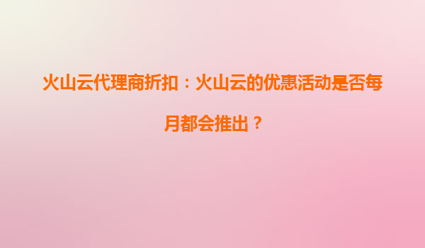 2025-10-01火山云代理商折扣:火山云的優(yōu)惠活動是否每月都會推出? 火山云與代理商的雙贏合作模式 火山云作為國內(nèi)領先的云計算服務提供商,憑借其高性能、高可靠性的云服...
