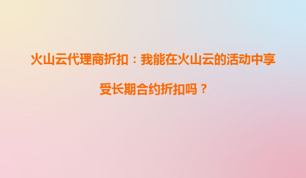 2025-10-01火山云代理商折扣:長期aharvest合約折扣詳解與平臺優(yōu)勢 一、火山云長期合約折扣 火山將云作為字節(jié)跳動旗下的云計算服務品牌,經(jīng)常推出針對代理商和企業(yè)的優(yōu)惠活動。其中...