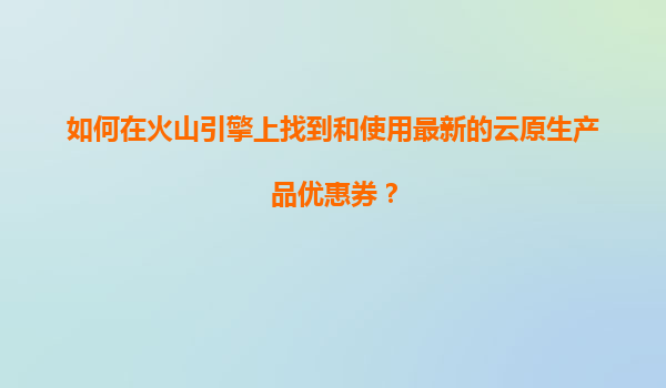 2025-11-04如何在火山引擎上找到并使用最新的云原生產(chǎn)品優(yōu)惠券? 一、火山引擎云原生產(chǎn)品概述 火山引擎是字節(jié)跳動(dòng)旗下的云計(jì)算服務(wù)平臺(tái),提供包括容器服務(wù)、Serverless、微服務(wù)治理等在...