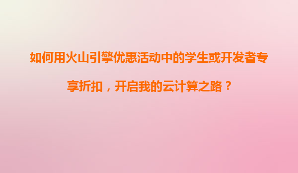 2025-11-04如何用火山引擎優(yōu)惠活動(dòng)中的學(xué)生或開(kāi)發(fā)者專(zhuān)享折扣,開(kāi)啟我的云計(jì)算之路? 一、火山引擎的學(xué)生與開(kāi)發(fā)者專(zhuān)享優(yōu)惠 在數(shù)字化轉(zhuǎn)型的大潮中,云計(jì)算已成為個(gè)人學(xué)習(xí)與企業(yè)發(fā)展的核心工具。但對(duì)于預(yù)算...