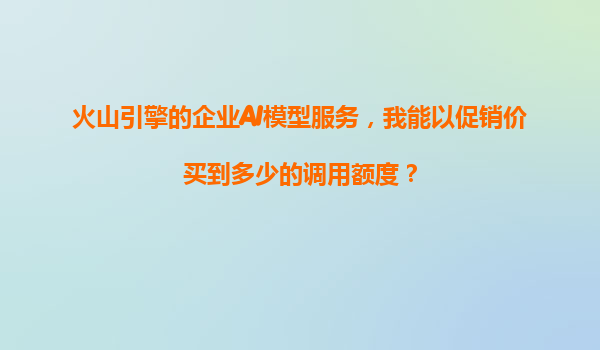 2025-11-04火山引擎企業(yè)AI模型服務(wù)促銷(xiāo)價(jià)調(diào)用額度詳解 一、標(biāo)題解析與核心內(nèi)容 原標(biāo)題"以火山引擎的企業(yè)AI模型服務(wù),我能以促銷(xiāo)價(jià)買(mǎi)到多少的調(diào)用額度?"包含以下關(guān)鍵信息: 服務(wù)主體:字節(jié)跳動(dòng)旗下...