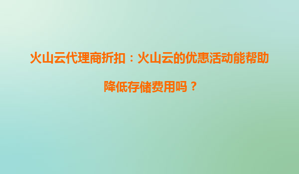 2025-09-29火山云代理商折扣:火山云的優惠活動能幫助降低存儲費用嗎? 一、火山云的核心優勢解析 火山云作為字節跳動旗下的云計算服務品牌,憑借其強大的基礎設施和技術能力,在存儲服務領域具有顯著優勢: ...