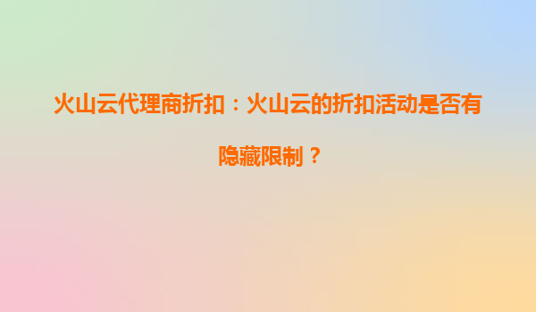 2025-09-29火山云代理商折扣:火山云的折扣活動是否有隱藏限制? 一、火山云的代理商折扣政策概述 火山云作為國內領先的云計算服務提供商,為吸引更多合作伙伴,推出了針對代理商的折扣活動。通常...