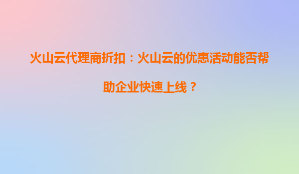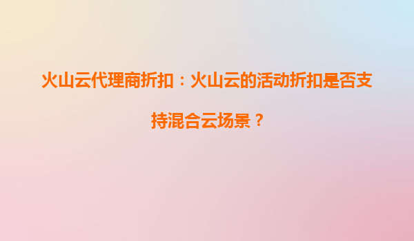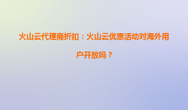 2025-09-28火山云代理商折扣:火山云折扣活動會影響計費透明度嗎? 引言 隨著云計算服務的普及,越來越多的企業(yè)選擇將業(yè)務遷移到云端。火山云作為國內(nèi)領先的云計算服務提...