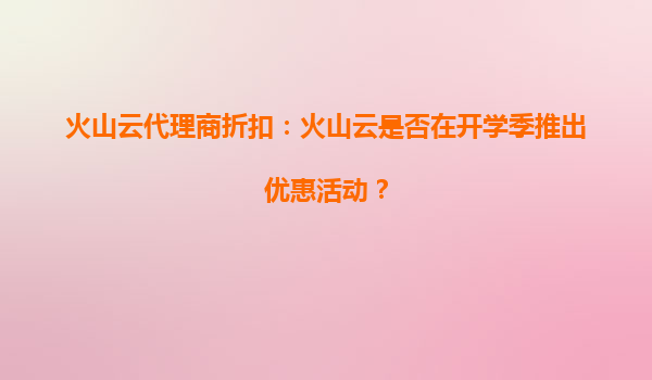 2025-09-28火山云代理商折扣:開學季優(yōu)惠活動來襲,助力教育行業(yè)數(shù)字化升級 一、火山云開學季優(yōu)惠活動:限時折扣與多重福利 隨著開學季的到來,火山云為教育行業(yè)用戶及代...