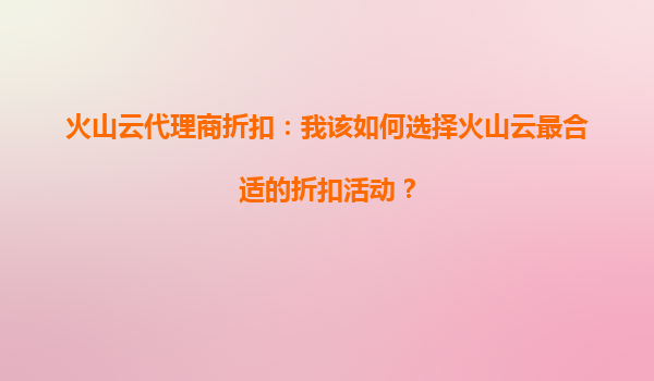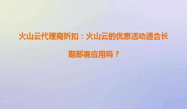 2025-09-28火山云代理商折扣:火山云的優(yōu)惠活動(dòng)適合長(zhǎng)期部署應(yīng)用嗎? 一、火山云的優(yōu)惠活動(dòng)概述 火山云作為國內(nèi)領(lǐng)先的云計(jì)算服務(wù)商,為吸引更多企業(yè)和開發(fā)者使用其平臺(tái),常年推出多種優(yōu)惠活動(dòng)。代理...