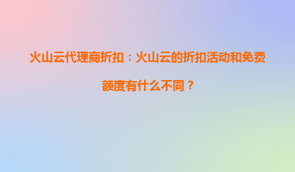 2025-09-28火山云代理商折扣與免費(fèi)額度解析:優(yōu)勢(shì)全覽 一、火山云折扣活動(dòng)與免費(fèi)額度的區(qū)別 火山云作為字節(jié)跳動(dòng)旗下的云計(jì)算服務(wù),為吸引用戶提供了多種優(yōu)惠政策,主要包...
