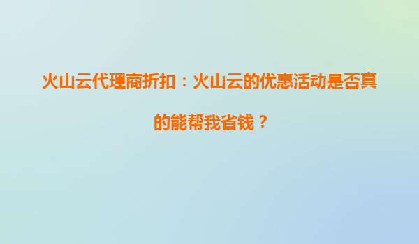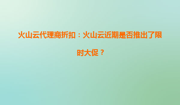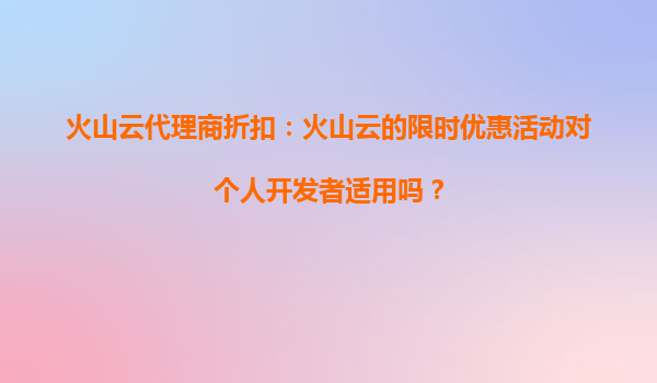 4008-020-360 火山云代理商折扣:火山云的限時優(yōu)惠活動對個人開發(fā)者適用嗎? 一、火山云限時優(yōu)惠活動概述 火山云作為國內(nèi)領(lǐng)先的云計算服務(wù)提供商,定期推出限時優(yōu)惠活動,旨在為用戶提供更具性價比的云服務(wù)資源...