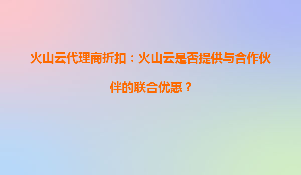 2025-09-24火山云代理商折扣政策解析:聯(lián)合優(yōu)惠助力合作伙伴共贏 在當前企業(yè)數(shù)字化轉(zhuǎn)型浪潮下,云計算服務(wù)成為支撐業(yè)務(wù)發(fā)展的核心基礎(chǔ)設(shè)施。作為行業(yè)領(lǐng)先的云服務(wù)提供商,火山云憑借其技術(shù)實力和生態(tài)布局,為合作伙伴...