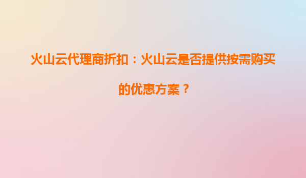 2025-09-22火山云代理商折扣:按需購買的優(yōu)惠方案解析 火山云的按需購買模式概述 火山云作為ByteDance旗下的云計算服務品牌,一直以彈性計算能力和高性價比著稱。其中,按需購買(Pay-As-You-Go)是其核心服務模式之一,特別適...
