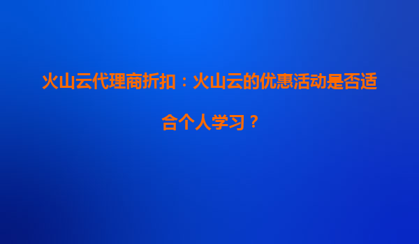 2025-09-21火山云代理商折扣:火山云的優(yōu)惠活動(dòng)是否適合個(gè)人學(xué)習(xí)? 引言 近年來(lái),云計(jì)算服務(wù)逐漸成為企業(yè)和個(gè)人學(xué)習(xí)的重要工具之一。火山云作為國(guó)內(nèi)領(lǐng)先的云服務(wù)提供商之...