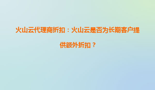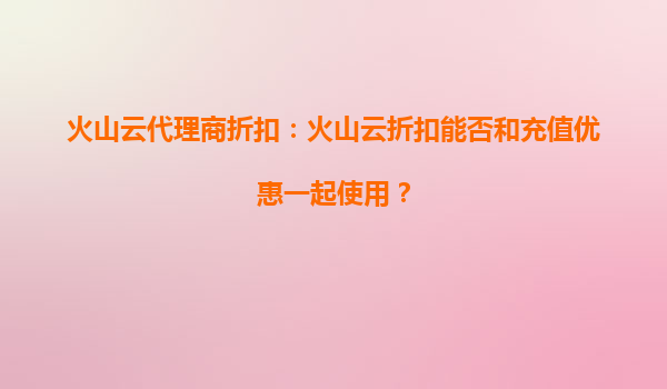 2025-09-21火山云代理商折扣:靈活組合的優(yōu)惠體系 火山云作為國(guó)內(nèi)領(lǐng)先的云計(jì)算服務(wù)提供商,始終致力于為客戶提供高性價(jià)比的云服務(wù)解決方案。針對(duì)用戶關(guān)心的"火山云代理商折扣能否和充值優(yōu)惠一起使用"這一問(wèn)題,答案是肯定的...