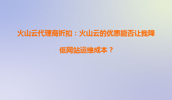 2025-09-21> 火山云代理商折扣:助力企業(yè)業(yè)務(wù)規(guī)模拓展的強(qiáng)力引擎 在數(shù)字化浪潮席卷全球的今天,云計(jì)算成為企業(yè)提升效率、降低成本、實(shí)現(xiàn)規(guī)模化發(fā)展的關(guān)鍵基礎(chǔ)設(shè)施。作為火山引擎旗下的云計(jì)算品牌,火山云憑借其強(qiáng)大的技術(shù)實(shí)...