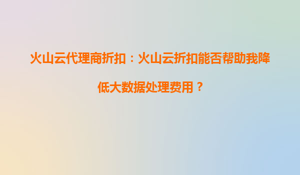 2025-09-19火山云代理商折扣:火山云折扣能否幫助我降低大數(shù)據(jù)處理費(fèi)用? 一、火山云的核心優(yōu)勢與大數(shù)據(jù)處理能力 火山云作為字節(jié)跳動(dòng)旗下的云計(jì)算服務(wù)品牌,憑借其穩(wěn)定的基礎(chǔ)設(shè)施和彈性計(jì)算資源,為大數(shù)據(jù)處理提供了...