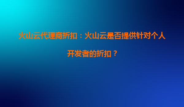 2025-09-19火山云代理商折扣:火山云是否提供針對個(gè)人開發(fā)者的折扣? 一、火山云簡介 火山云是字節(jié)跳動(dòng)旗下的云計(jì)算服務(wù)品牌,依托字節(jié)跳動(dòng)強(qiáng)大的技術(shù)積累和全球基礎(chǔ)設(shè)施,為用戶提供高性能、穩(wěn)定可...