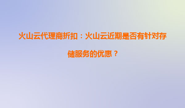 2025-09-19火山云代理商折扣:火山云存儲服務(wù)的優(yōu)惠與優(yōu)勢解析 一、火山云存儲服務(wù)近期優(yōu)惠動(dòng)態(tài) 近期,火山云為回饋用戶持續(xù)支持,針對對象存儲、文件存儲、塊存儲等核心...