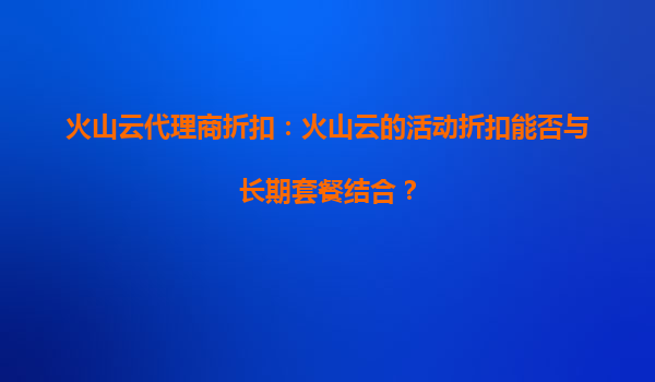 2025-09-19火山云代理商折扣:火山云活動(dòng)折扣與長期套餐的靈活結(jié)合 在云計(jì)算服務(wù)快速發(fā)展的今天,企業(yè)對于高效、穩(wěn)定且經(jīng)濟(jì)的云服務(wù)需求日益增長。火山云作為領(lǐng)先的云計(jì)算服務(wù)提供商,以其高性能、高可靠性和靈活的付費(fèi)模式吸...