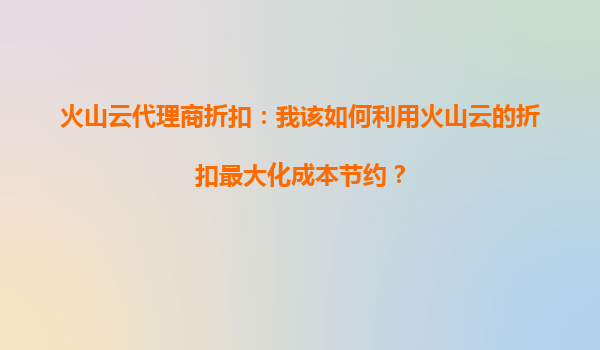 2025-09-19火山云代理商折扣:我該如何利用火山云的折扣最大化成本節(jié)約? 一、火山云的核心優(yōu)勢與代理商價(jià)值 火山云作為領(lǐng)先的云計(jì)算服務(wù)提供商,具備以下核心優(yōu)勢:彈性計(jì)算資源按需分配、全球分布...