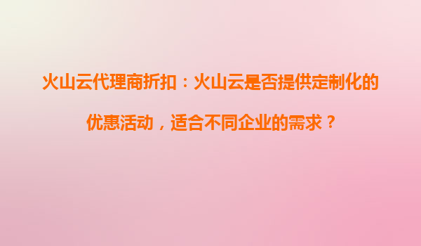 2025-09-17火山云代理商折扣:定制化服務助力企業(yè)數(shù)字化轉(zhuǎn)型 一、火山云服務體系:靈活高效的云解決方案 作為字節(jié)跳動旗下的云計算品牌,火山引擎(VolcanoEngine)通過火山云為企業(yè)提供全棧云服務解...