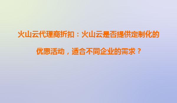 2025-09-17火山云代理商折扣:定制化服務(wù)助力企業(yè)數(shù)字化轉(zhuǎn)型 一、火山云服務(wù)體系:靈活高效的云解決方案 作為字節(jié)跳動(dòng)旗下的云計(jì)算品牌,火山引擎(VolcanoEngine)通過火山云為企業(yè)提供全棧云服務(wù)解...