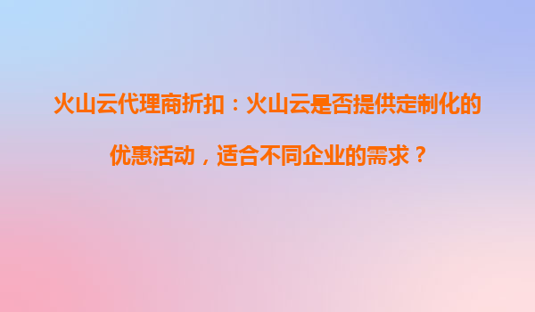 2025-09-17火山云代理商折扣:定制化服務(wù)助力企業(yè)數(shù)字化轉(zhuǎn)型 一、火山云服務(wù)體系:靈活高效的云解決方案 作為字節(jié)跳動(dòng)旗下的云計(jì)算品牌,火山引擎(VolcanoEngine)通過火山云為企業(yè)提供全棧云服務(wù)解...