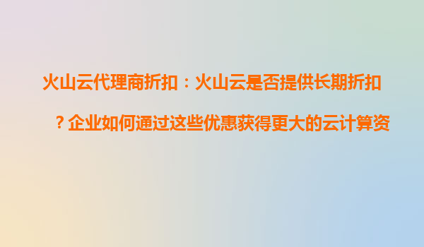 2025-09-16火山云代理商折扣:如何通過(guò)長(zhǎng)期優(yōu)惠最大化云計(jì)算資源? 一、火山云的長(zhǎng)期折扣政策解析 火山云作為國(guó)內(nèi)領(lǐng)先的云計(jì)算服務(wù)商,為吸引企業(yè)客戶長(zhǎng)期合作,提供了階梯式折扣...