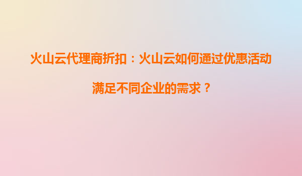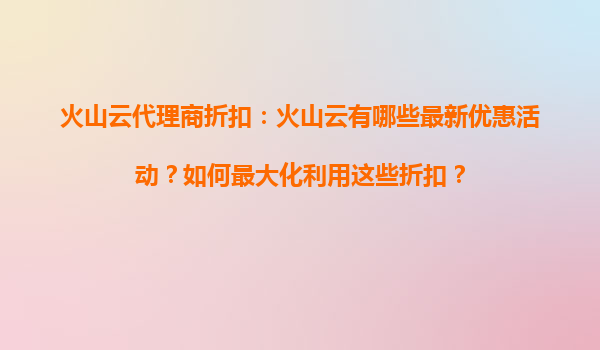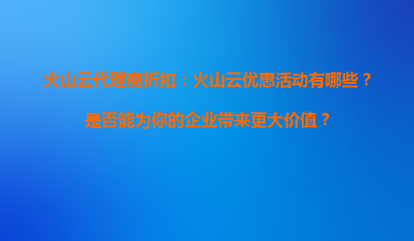 2025-09-16火山云代理商折扣:抓住重磅優(yōu)惠,搶占云計(jì)算先機(jī) 一、火山云近期重磅折扣活動(dòng)盤點(diǎn) 作為字節(jié)跳動(dòng)旗下的云計(jì)算服務(wù)品牌,火山云近期針對(duì)代理商和企業(yè)用戶推出了系列重磅折扣政策,主要包括: ...