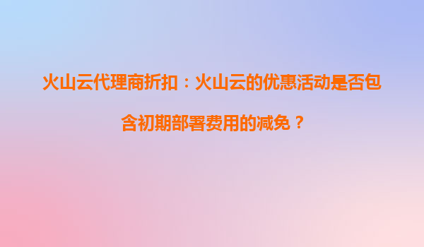 2025-09-16火山云代理商折扣活動:為企業(yè)帶來的長期節(jié)省優(yōu)勢解析 一、引言:企業(yè)數(shù)字化轉(zhuǎn)型的成本挑戰(zhàn) 在數(shù)字化浪潮下,云計算已成為企業(yè)降本增效的核心工具。然而,高昂的IT基礎(chǔ)...