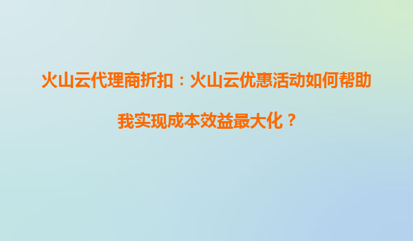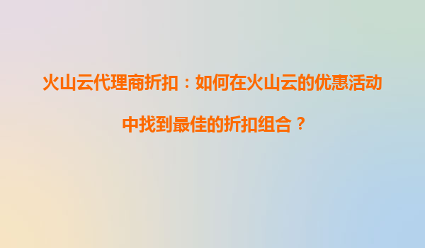 2025-09-16火山云代理商折扣:如何在火山云的優(yōu)惠活動(dòng)中找到最佳的折扣組合? 一、火山云的強(qiáng)大優(yōu)勢(shì) 在尋找最佳折扣之前,首先要了解為什么選擇火山云。作為國(guó)內(nèi)領(lǐng)先的云計(jì)算服務(wù)提供商,火山云憑借以下核心...