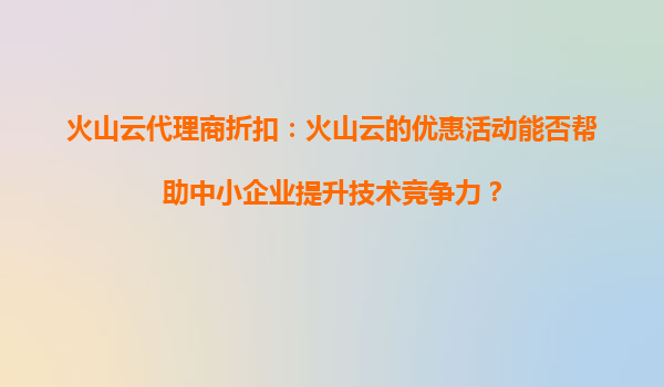 2025-09-16火山云代理商折扣:火山云的優(yōu)惠活動(dòng)能否幫助中小企業(yè)提升技術(shù)競(jìng)爭(zhēng)力? 一、火山云的核心優(yōu)勢(shì)與中小企業(yè)需求匹配 火山云作為字節(jié)跳動(dòng)旗下的云計(jì)算服務(wù)品牌,憑借其強(qiáng)大的技術(shù)背景和豐富的資源積累,...