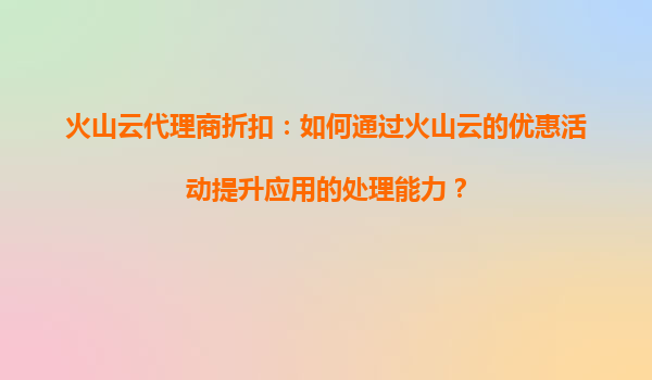 2025-09-16火山云代理商折扣:如何通過火山云的優(yōu)惠活動(dòng)提升應(yīng)用的處理能力? 在當(dāng)今數(shù)字化時(shí)代,云計(jì)算已成為企業(yè)提升應(yīng)用處理能力的核心工具。火山云作為國(guó)內(nèi)領(lǐng)先的云服務(wù)提供商,憑借其高性能、穩(wěn)定可靠的服務(wù)和豐富的優(yōu)惠...